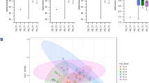 Raw sequences were initially filtered to keep only the high-quality-reads (Q > 25). Paired-end joining was done by using fastq join67,68 under default values. Classification of taxonomic abundances was done as previously reported66 using the Quantitative insights into microbial ecology69 (QIIME) software package (version 1.9). Sequences were clustered into OTUs at 97% similarity using UCLUST algorithm70 and the Greengenes database (version 13.8)71. Chimeric detection and removal was done with USEARCH 6.170,72 against the ChimeraSlayer reference database73. Taxonomic assignment was done with Naïve Bayes classification against RDP database74 (Release 11, 2016). For each taxon, the Kruskal Wallis test was perform to compare OTU frequencies in sample groups and to ascertain whether or not there are statistically significant differences between the OTU abundance in the different sample groups, P values were FDR-corrected for multiple hypotheses testing. Single rarefaction was done at 21,134 sequences/sample for alpha-diversity analysis. Alpha diversity and richness estimation through Shannon-Wiener and Chao1 indices respectively, were calculated on rarefied data using alpha_diversity.py script from QIIME. Alpha diversity between groups was compared through two-sample non-parametric t-tests (Monte Carlo method) at maximum depth in rarefied samples (with 999 permutations). UniFrac weighted and unweigthed distances were calculated to assess significant differences across samples75,76. Testing the significant differences between grouped samples was done with compare_categories.py script from QIIME75 using ANOSIM as the method77. The R statistic is calculated by ANOSIM, where an R value near +1 means that there is dissimilarity between the groups, while an R value near 0 indicates no significant dissimilarity between the groups. Samples were considered to be significantly different when the accompanying P value was < 0.05. Distance-based redundancy analysis was done to estimate the strength and statistical significance of sample groupings using Euclidean distance matrices.