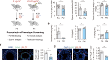 Statistical analyses were performed for the testicular weight and histological data of all the boars. Data were analyzed via unpaired Student’s two-tailed t test. The other data (immunohistochemistry, TUNEL assay, and western blotting) were analyzed as a 2 × 2 factorial with the general linear model procedures of the Statistical Analysis Package60. The model factors included the effects of energy, time, and their interaction. All data were analyzed in the SAS software (Version 9.2; SAS Institute Inc., Cary, NC, USA) and reported as means with their SDs. Data with P < 0.05 were considered statistically significant, whereas data with P < 0.10 were considered to be a tendency.