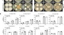 S. populiperda was selected to analyze poplar disease response. Pathogens grown at 23 °C on PDA medium were activated for 1 week. Leaves from 4-month-old transgenic and WT poplars were punctured using a 5-mL syringe needle and inoculated with a small amount of PDA containing the pathogen or PDA as a negative control. Pathogenic soft rot symptoms were evaluated periodically. The maximal lesion size (diameter, mm) on leaves was recorded at 24–72 h as previously described51, and the degree of leaf damage was assessed in WT and transgenic poplars. The time of conidia appearance was determined in both groups by microscopy. Each experiment was repeated at least three times.