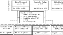 The data for this paper come from two Simulated HIV Vaccine Efficacy Trials (SiVETs) in Uganda. To assess and improve readiness for efficacy trials of HIV preventive vaccines or other investigational agents among key populations in Uganda, we conducted two trials in which licensed Hepatitis B vaccine was used in a protocol that otherwise resembled an efficacy trial for HIV vaccine. These were nested in, respectively, an observational cohort of FF (Jul 2012–Apr 2014) in Masaka and a cohort of FSW (Aug 2014–Apr 2017) in Kampala. Both studies were conducted by MRC/UVRI & LSHTM Uganda Research Unit clinics supported by the International AIDS Vaccine Initiative (IAVI). The observational cohorts details have been previously described6,8,29,30. Sexually active (self-reported having sex in the preceding three months) HIV negative women who had been part of the observational cohorts’ quarterly follow up (aimed at determining HIV incidence) for between three and 18 months were screened for eligibility (Table 1) for enrollment into the SiVET. Those eligible were asked if they were using any method of contraceptive. The contraceptive methods were classified as either reliable (injectable DMPA, implant, oral pills, and IUD), or unreliable (condoms, lactational amenorrhea, withdrawal etc.). The study nurse promoted reliable contraceptives to women who were not using any method, or were using an unreliable method, at baseline. Eligible women who were either already using a reliable method or were willing to initiate one were enrolled into the SiVET. They were provided with a reliable contraceptive method of their choice. While DMPA and oral pills were provided at both study site clinics (Kampala and Masaka), implant and IUD were provided by the study staff only at the Kampala clinic. At the Masaka clinic, women were referred to a Marie Stopes clinic located about one kilometre from the study research site clinic where they could obtain implant or IUD.