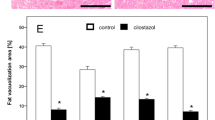 RNA was isolated from rat liver tissue by the TriZOL method (Life Technologies Inc.) according to the manufacturer’s instructions. One microgram of total RNA was treated with DNase I (Thermo Fisher Scientific) and cDNA was made using an oligo-dT primer and M-MLV reverse transcriptase (Promega). PCR assay was performed using an Mx3000P Real-Time Thermocycler (Stratagene) with EvaGreen® dye (HOT FIREPol® EvaGreen® qPCR Mix Plus (ROX); Solis BioDyne). Primer sequences are shown in Supplementary Information. PCR reactions were initiated by incubation at 95 °C for 12 min, followed by 40 cycles at 95 °C for 15 s, 60 °C for 30 s and 72 °C for 30 s. Relative changes in gene expression were determined by using the 2−ΔΔCt method25.