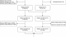 For statistical analysis, continuous data were expressed in the format of mean ± standard deviation. Data on categorical characteristics were expressed as percent values or absolute numbers. For comparisons of clinical and pathological characteristics between the patients groups, a chi-squared test was used for categorical data, while a t-test was used for continuous data. A Kaplan–Meyer curve and a log-rank test were used for survival analysis. A Cox proportional hazards model applying the input method was used to identify factors associated with disease-specific death. Hazard ratios (HRs) and 95% confidence intervals (CIs) were used. A P value of < 0.05 was considered to be significant. Statistical analysis was performed using the Statistical Package for the Social Sciences software version 23 (IBM Corp., Armonk, NY, USA).