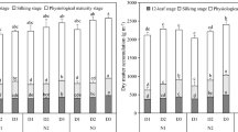 The total N concentration of plant samples was determined by the Kjeldahl method28. The contribution proportion (NCP) and efficiency (NTE) of nitrogen transport and nitrogen assimilation and after anthesis (NA) were calculated in the manner of Liu et al.29 and Shi et al.30. Nitrogen partial factor productivity (PFPN) and nitrogen agronomic efficiency (AEN) were calculated as following equation: