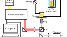 The obtained biofilm samples were illuminated by broadband VIS + wIRA radiator (Hydrosun 750 FS, Hydrosun Medizintechnik GmbH, Müllheim, Germany) containing a 7 mm water cuvette14,17. For the absorption of the infrared-B and -C wavelengths emitted by the halogen lamp, an accessory water filter (dimensions: length: 28 cm, width: 27 cm, height: 28 cm) using 750 W (voltage: 230 V, 50–60 Hz) was inserted into the light path. The radiator also included an orange filter, namely BTE 31, with a diameter of 10 cm and an efficiency level of 200 mW/cm². The BTE 31 filter enabled more than a doubled-weighted efficient integral illumination with reference to the absorption spectrum of protoporphyrin IX. In order to prevent superficial overheating, the absorption bands 944 and 1180 nm were also filtered. The total spectrum of the water-filtered absorption ranged from 570 nm to 1400 nm, with local minima at around 970 nm, 1200 nm and 1430 nm, respectively90. The total amount of unweighted (absolute) radiation applied to the biofilms for 5 minutes equaled 200 mW cm−2 VIS + wIRA, which comprised 48 mW cm−2 VIS and 152 mW cm−2 wIRA. This broad-spectrum light source provided optimal absorption for the tested photosensitizer, namely H. perforatum ethanol (15.8%) extract (St. John’s Wort, Quality Herbal Extracts, Cooranbong, Australia). Pseudohypericin – the main component of H. perforatum – can be activated within the UVA (and UVA1) visible absorption range, while absorption peaks are mainly exhibited at red wavelengths (570–700 nm)91. The visible absorption maximum (λ max) of H. perforatum is 598 nm92. For the assays, H. perforatum extract was diluted in 0.9% saline (NaCl) to a final concentration of 32 mg ml−1 and a final alcohol concentration of 15.8% (v: v). Prior to use, the original extract solution was stored in a light safety glass at 4 °C in the dark for up to fourteen days to block any light-induced photochemical attenuation.