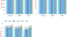 The enzymatic activity of superoxide dismutase (SOD) was recorded following the method of Van Rossun et al.34. The enzyme extract (50 µL) containing 50 mM K-P-buffer (pH 7.8). was added to 2 μM riboflavin, 75 μM nitroblue tetrazolium chloride (NBT), 100 μM EDTA and 13 mM L-methionine. The reaction was initiated in a chamber under illumination of a 30 W-fluorescent lamp for 10 min. The blue color formazane, produced as a result of photoreduction caused by nitroblue tetrazolium (NBT), was noted as increase in absorbance at 560 nm. No enzyme extract was added in reaction mixture used as control and kept in the dark. One SOD unit was defined as the quantity of enzyme required to inhibit 50% photoreduction of the NBT.