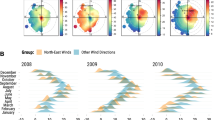 where u* is the friction velocity, and \({u}_{\ast }\equiv \sqrt{{(\overline{w\text{'}u\text{'}})}^{2}+{(\overline{w\text{'}v\text{'}})}^{2}}\); u and v are the components of horizontal wind speed in the longitude direction and the latitude direction, respectively; w is the vertical wind speed; u', v' and w' are the turbulence fluctuations of u, v and w, respectively; and the overbars indicate the time average; T0 and Tair are the air temperatures at the sea surface and at the measurement height, and T0 is considered to be equal to sea surface temperature; q0 and qair are air specific humidity at the sea surface and at the measurement height, and q0 is calculated from the sea surface temperature25.