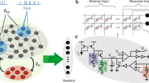 The central part of the artificial side of the bio-hybrid system is formed by a reconfigurable on-line learning spiking neuromorphic processor (ROLLS)28, which contains neuromorphic CMOS circuits emulating short-term plasticity (STP) properties of synapses29 and long-term plasticity (LTP) ones30. In addition, this processor comprises mixed signal analogue-digital circuits which implement a model of the adaptive exponential integrate-and-fire neuron31. Input and output spikes are sent/transmitted from the chip using asynchronous IO logic circuits which employ the Address-Event-Representation (AER) communication protocol32. The chip is connected to a host PC which receives UDP-packets from the internet. These packets contain information on stimulus destinations and corresponding synaptic weights. This information is decoded by a Field Programmable Gate Array (FPGA) device and conveyed to the neuromorphic processor. In this work, the parameters of the CMOS synapse circuits were set to produce weak excitatory postsynaptic currents (EPSCs) with long time constants, such that high frequency stimulation causes an additive effect on the net amplitude of the resulting EPSC. The value of the weight encoded in the UDP packet was used to produce spike trains of different frequencies transmitted by the FPGA to the neuromorphic processor (see also Supplementary Fig. 4). In addition to the signals arriving from the UDP interface, locally generated spike trains were sent to the neuromorphic processor, to provide a controlled stimulus for evoking background activity. This system is shown in Supplementary Fig. 4.