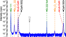 The concentrations of radiative defects after the etching were also estimated from the dependence of the IQE of PL on the excitation intensity. Figure 3(b) shows the \(\eta ({P}_{0})\) dependences for PL bands in sample H202 before and after etching. The concentrations of defects responsible for the RL1, YL1, and UVL bands in unetched and 400-nm etched areas of samples H3 and H202, found from the fit of experimental data with Eq. (2), are given in Table 2. The PL analysis at different depths shows no significant changes in concentrations of CN, MgGa and RL1-related acceptor in the HVPE-grown GaN samples.