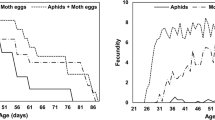 Priyadarshani, T. D. C., Hemachandra, K. S., Sirisena, U. G. A. I. & Wijayaguasekara, H. N. P. Developmental biology and feeding efficiency of Menochilus sexmaculatus (Coleoptera: Coccinellidae) (Fabricius) reared on Aphis craccivora (Hemiptera: Aphididae) (Koch). Trop. Agric. Res. 27, 115–122 (2016).