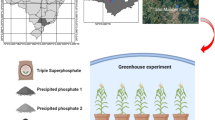 At day 120 after sowing, 24 plants chosen randomly from the remaining three rows were harvested from each experimental unit. The cobs were removed from the stalks and grain yield assessed at 13% moisture content. Thousand-grain weight (TGW) was also recorded. The dried plant material was processed by ashing at 550 °C for 6 h in a muffle furnace. The concentration of phosphorus was assayed by employing the Vanadate-molybadate method69.