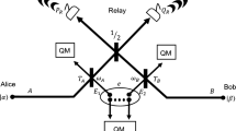 where α is the maximum discretization range of the ADCs, which takes the finite range of detectors into consideration, and δ denotes the resolution of the measurement, which shows how much detail the detector can detect. The corresponding outcome alphabet is denoted by \(\chi =\{1,2,\mathrm{..}.,2\alpha /\delta \}\), where we assume \(2\alpha /\delta \in {\mathbb{N}}\) and every measurement outcome corresponds to one of the intervals. After this step, the continuous outcomes are replaced by the discrete results, which are denoted by