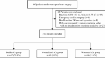 S-Cre levels were measured using the Jaffe rate method at CMUH Central Laboratory using a Beckman UniCel DxC 800 immunoassay system (Beckman Coulter Inc., Brea, CA, USA). The estimated glomerular filtration rate (eGFR) was calculated using the Chronic Kidney Disease-Epidemiology Collaboration equation19. Among patients with multiple S-Cre measurements (>2 times) on the same day, we selected the first two S-Cre measurements for final analysis. The within-day S-Cre difference (ΔS-Cre) was calculated by subtracting the first S-Cre value from the second value. The within-day percentage change (ΔS-Cre%) was calculated by dividing the within-day difference by the first S-Cre value and multiplying by 100. IKF was defined by first S-Cre value greater than 1.5 mg/dL for men or 1.3 mg/dL for women.