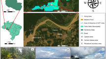 The study was conducted in the Araguari river basin, located in the Brazilian State of Amapá (Fig. 4). Climate in the area is characterized as equatorial monsoon44 with an annual rainfall greater than 2000 mm. The dry season extends between September and November (total monthly rainfall <150 mm), and the wet season from February to April (total monthly rainfall >300 mm)45.