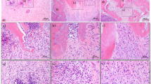 For the histological analysis, 8 animals from each group (8 SHAM and 8 OVX) totaling 16, were euthanized by anesthetic overdose (sodium thiopental at 150 mg/kg intraperitoneally) at 42 days after implant placement. Immediately after euthanasia, the tibias with implants were removed from the animals, fixed in formalin and decalcified in EDTA (Ethylenediamine tetra acetic acid) (10%) for 8 weeks. At this time, the implants were removed with a 1.2-mm hex key by using counterclockwise movement. Subsequently, the pieces were dehydrated in a sequence of 70–100% grades of alcohol. After these steps, the samples were diaphanized with xylol and embedded in paraffin. Sections 5 μm thick were cut using a microtome. The even slides were stained with hematoxylin and eosin (HE) and the odd ones were intended for obtaining immunohistochemical reactions.