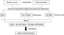 RNA biology is an under-investigated field of cancer even though pleiotropic changes in the transcriptome are key feature of cancer cell81. RBPs are able to control every aspect of RNA metabolism such as translation, splicing, stability, degradation of mRNA, nucleocytoplasmic transport, capping, and polyadenylation81,82,83,84,85. RBPs are emerging as critical modulators of BC and the prediction of relation with this complex disease through machine-learning methods provides a better understanding of new genomic targets and biomarkers. The 10 RBPs best related to BC, according to our machine-learning predictions were S100A9, TXN, RPS27L, RPS27, RPS27A, RPL38, MRPL54, PPAN, RPS20 and CSRP1 (Supplementary Table 5). For instance, Rodrigues et al. suggested that TXN is overexpressed in BC, and it is related to tumor grade, being a key element in redox homeostasis86.
