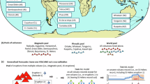The record of seismicity at Axial Seamount also suggests that earthquake frequency increases quasi-exponentially in the years preceding an eruptive event20,24,42,46. The average moment magnitude (MW) for observed earthquakes in the months preceding Axial’s 2015 eruption is 0.1, with the highest magnitude earthquakes (MW > 2.0) occurring during syn-eruption diking46. Given the magnitude of precursory seismicity, it is unlikely that the culminating eruption is triggered by a large earthquake as has been observed several times in terrestrial systems19,48. However, the relationship between inflation and seismicity at Axial Seamount suggests an interplay between the magmatic system and the stress state in the surrounding host rock. It is likely that inflation of the magma reservoir causes host rock stresses to build along pre-existing caldera-related faults, which generates seismicity. At some point, the cumulative stress release from seismicity should damage the host rock such that strain occurs more readily, and surface inflation occurs with less pressurization of the magma reservoir. As such, we would expect high rates of seismicity accompanying high levels of reservoir inflation to be a precursor to eruption3. As noted earlier our model predicted eruption dates consistently precede the observed eruption dates, forecasting eruption well in advance of the actual timing. We postulate that incorporating faults in the model space to simulate this effect might result in more accurate forecast dates. Future work should therefore address this hypothesis to investigate interdependence of magmatic and seismic processes at Axial Seamount.