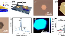 Figure 1d shows the Raman spectra of the MoS2 quantum dots. Raman spectra exhibit two distinguishable peaks that originate from optical phonon modes \(E_{2g}^{1}\) and \(A_{1g}^{{}}\) corresponding to in-plane and out-of-plane vibration of S–Mo–S bonds respectively33. Compared to the bulk MoS2, both \(E_{2g}^{1}\) and A1g peaks are blue-shifted from 374.17 cm−1 and 400.43 cm−1 to 381.63 cm−1 and 407.92 cm−1 respectively due to the quantum confinement effect of MoS2 QDs, which is very consistent with the values reported for MoS2 nanodots34. The blue shift of both in-plane (\(E_{2g}^{1}\)) and out-of-plane (\(A_{1g}^{{}}\)) vibrational modes in quantum dots are different from the shift of the corresponding peaks when MoS2 changes from multilayers to monolayer, where \(E_{2g}^{1}\) mode has a blue-shift and \(A_{1g}^{{}}\) has a red-shift 35,36.