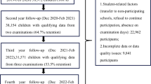 One hundred forty-four children from the Primary Care Department of the Eye Hospital affiliated with Wenzhou Medical University were enrolled between August 2014 and September 2015. Subjects meeting the following criteria were recruited: available retrospective data for more than 6 months prior to the enrolment from the outpatient system; aged 8 to 15 years at the time of enrolment; spherical equivalent of more than − 0.75 D in each eye, astigmatism less than 2.00 D in either eye, anisometropia less than 1.00 D, monocular best visual acuity better than 0.1 of logMAR; no strabismus by cover test with distance-corrected spectacle; no progressive addition lens or contact lens wearing history; and no history of any ocular disease. The study conformed to the tenets of the Declaration of Helsinki and was approved by the Ethical Committee of the Eye Hospital affiliated with Wenzhou Medical University. Informed consent was obtained from the subjects and their legal guardian.