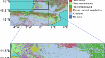The DMC and DC subcomponents of the Fire Weather Index20 were respectively used as generic indicators of medium and long-term drought. The DMC and DC are calculated in theory from daily 24 h accumulated precipitation data, and the temperature, humidity, and wind speed at 12:00 local time. However, since obtaining modeled data at 12:00 local time was not possible, we used the daily mean temperature, mean humidity and accumulated precipitation. This may have biased the DC and DMC estimates, but time series calculated with both variables are highly correlated50. Furthermore, as these fire variables were mostly used for classification purposes, we do not expect this approximation to have a significant impact on the results of the study. Nonetheless, the DC and DMC values calculated here may differ from those computed with the usual 12:00 data.