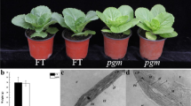 To observe the shape of a leaf cell, the third true leaves with the same part from lcm mutant and ‘FT’ were examined by SEM as previously described by Lin et al.50. A fresh leaf of lcm mutant and ‘FT’ with the same part was fixed in FAA (50% ethanol, 5% glacial acetic, 10% formalin) for 24 h at room temperature (25 °C), dehydrated with different concentrations of alcohol (50–100%) and then permeated in xylene. Finally, the sample was embedded in paraffin. The paraffin section was processed by a microtome (LeicaRM2016, Germany); after staining, the leaf was observed using an optical microscope (Nikon ECLIPSE 80i, Japan).