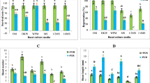 The axillary shoots (buds) was cut into 2–3 shoots (buds) and then cultured on the new WPM media supplemented with different combinations of PGRs (Table 1). After culturing for 2 months, the shoot proliferation coefficient (SPC) was assessed as number of new shoots/number of old shoots.