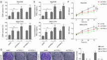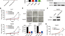 Sampling of human HCC specimens (tumor and adjacent non-cancerous tissues) was performed promptly after hepatectomies done at the affiliated hospital of Guilin Medical University (Guilin cohort). Prior to collection, all patients were counselled regarding the use of their tissues for this study and provided written consent. Experimental protocols were approved by the Ethics Committee of Peking University People's Hospital and the Affiliated Hospital of Guilin Medical University. HepG2, SK-HEP-1 and HEK293T cells were obtained from the American Type Culture Collection (ATCC, USA) and maintained in Eagle's Minimum Essential Medium (ATCC). MHCC-97H cells were kindly provided by the Academy of Military Medical Science (Beijing, China) and maintained in Dulbecco’s modified Eagle’s medium (Gibco). GP2-293 cells were procured from the Cell Bank of the Chinese Academy of Sciences (Shanghai, China) and grown in Dulbecco’s modified Eagle’s medium. All media were enriched with penicillin–streptomycin antibiotics (Gibco) and 10% fetal bovine serum. The cells were cultured at 5% CO2 at 37 °C.