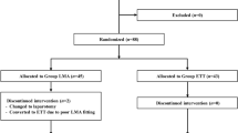 van Esch, B. F., Stegeman, I. & Smit, A. L. Comparison of laryngeal mask airway vs tracheal intubation: a systematic review on airway complications. J. Clin. Anesth. 36, 142–150 (2017).