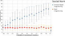 To understand the mechanism driving the effects of strategy and emotion on cooperation rate, we build on prior work suggesting that the social effects of emotion can occur through inferential and affective processes12,13; in our case, we looked at participants’ self-reported emotion and expectations of cooperation. Regarding the former, we focused on self-reports of joy, as shown in Fig. 2C (but see the SI for a full analysis of all self-reported emotions). A factorial ANOVA revealed an effect of strategy, F(1, 317) = 122.45, P < 0.001, partial η2 = 0.279, with participants experiencing more joy with generosity than extortion. There was also a trend for an effect of emotion, F(1, 317) = 2.94, P = 0.087, partial η2 = 0.009, with participants tending to experience more joy with (expressively) cooperative than competitive counterparts. Regarding expectations of cooperation (Fig. 2D), a factorial ANOVA confirmed an effect of strategy, F(1, 317) = 150.43, P < 0.001, partial η2 = 0.322, with participants expecting more cooperation with generosity than extortion. There was also an effect of emotion, F(1, 317) = 9.79, P = 0.002, partial η2 = 0.030, with participants expecting more cooperation from (expressively) cooperative than competitive counterparts. These results, thus, indicate that participants made appropriate inferences about expectations of cooperation from strategy and emotion, while experiencing concomitant emotion in the process.