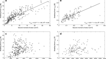 The region of high LUE regime corresponded to the relatively high temperature (ST ≥ 17 °C), and low to high salinity (10–30 ppt) (Table 2). The associated NEECO2,uptake and PAR varied within a wide range indicating their high variability, although the range of \(\frac{{NEE_{CO2,uptake} }}{PAR}\) was relatively narrow (approximately 0.003–0.01) (Fig. 3). In contrast, in the low LUE zone (LUE < 0.002), the range of temperature and salinity were relatively low (~ ≤ 18 °C) and high (29–38 ppt), respectively. Although adequate sunlight was available for photosynthesis in the low LUE regime (average PAR = 1,130 µmol/m2/s)45, 46, the CO2 uptake (0.05–3 µmol/m2/s; Table 2) and corresponding LUE (< 0.002) were considerably low. Similar to the low LUE regime, salinity was very high (30–40 ppt) in the transitional regime where the range of temperature was comparable to the high LUE regime. The corresponding NEECO2,uptake and PAR were higher in the transitional regime than the low LUE regime, but lower than the high LUE regime. Atmospheric pressure, Pa varied from 1,008 to 1,019 millibar in the high LUE regime; the ranges of Pa in the transitional and low LUE regimes were also comparable to the high LUE regime (Table 2).