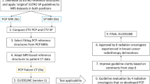 First, we compare our results to other reported results for prone WBI positioning. We updated the overview as cited by Mulliez et al.18 (Table 6), and calculated the margins according to the (\(2.5\sum + 0.7\sigma )\) formula where possible, so as to make direct comparison as valid as possible. Comparing our margins to these recalculated margins, we see similar results as Mulliez et al.18, except for the LL margin, which was substantially reduced using the crawl couch. The standard prone position did show a larger LL error in our sample. Only the group of Varga26 reported vastly superior margin results, but their setup was evaluated with EPID using a single treatment beam as portal. There is an inherent loss of information when only using 2D imaging as verification, and indeed they do not report the errors along each axis separately. Data cited in the publication of Mitchell et al.27 back this up. They state in their manuscript that CBCT catches more errors than the EPID technique and thus will require larger margins. While Joszef et al.28 report slightly superior margins along the LL and CC axis compared to the prone crawl setup, their report only concerns partial breast irradiation, so effects of edema on patient shift might not be as pronounced. In general, our crawl couch results compare favourably to most of the results published for prone radiotherapy13,14,15,18,22,26,27,28,29,30, especially for the AP and LL systematic error distribution defined by M and ∑. Because our random error σ is lower than in these other studies, we can obtain smaller PTV margins of around 1 cm in these directions. However, despite our CC margins being comparable to other studies, they range amongst the wider margins reported. This seems to be caused by a higher ∑ rather than σ, as the latter is among the lowest observed in prone position, but the former is amongst the highest. This higher ∑ could be due to less reproducible shoulder support on the irradiated side, as this position has more possible variation using this new positioning technique. As σ is low, this larger ∑ has more to do with inter-patient rather than intra-patient variation. Because each individual patient’s position will be less variable between fractions, margins could be safely reduced using eNAL-protocols31.