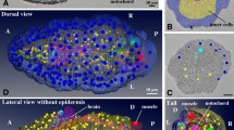 Once we defined the DO, we constructed the AO (Fig. 1). We carefully studied our anatomical data, comparing stage-by-stage information from CLSM and histology. This allowed us to recognize all the organs/tissues and follow their differentiation over time. We then listed, in an Excel file, the terms referring to the recognized anatomical entities (including synonyms, when present) reported in the literature and used by researchers since 1893 (Supplementary Data S6). We listed 203 entities (Supplementary Data S7, column F, “Further specification 4”), assigning to each one its ID. Moreover, we detailed, for each anatomical entity, the following characteristics: the definition (column “Definition” in Supplementary Data S7, Supplementary Data S8) based on the literature; the anatomical hierarchical level, specifying to which superior entity each belongs (Part of); the tissue from which it derives (Develops from); the developmental stage of its disappearance (End stage); and the developmental stage in which it is first recognizable (Start stage). Therefore, the Start stage and End stage relationships link the AO to the DO, providing the precise description of the timing of development. If necessary, we took note of a specific feature (column Comment in Supplementary Data S7) and listed the bibliographic references (Supplementary Data S6 and column Literature in Supplementary Data S7). We also built a complete anatomical atlas in which most of the anatomical entities were efficiently annotated (Figs. 2–5; Supplementary Figs. S9–S15). Lastly, all the curated data were incorporated into a computable OBO format34 (Fig. 1).