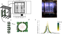 To monitor vertical migration, we used small groups of krill which were free to move within a vertical column tank (Supplementary Fig. S1). We performed two experimental runs. In the first run, we monitored DVM of a group of 45 krill exposed to LD for 48 h. Lights were turned on at 6:00 (ZT0). Light intensity gradually increased until 12:00 (ZT6) reaching the maximum of 50 lx at the surface of the tank, then decreased until 18:00 (ZT12), when lights were turned off until 6:00 the next morning (ZT24). Light was provided by one fluorescent tube placed above the tank at 50 cm distance covered with a gel filter simulating light attenuation at 30 m depth in natural conditions (ARRI, Marine Blue 131). This is the same method used to illuminate the holding tanks of the aquarium and no apparent vertical light intensity gradient was detected within and around the column, which resulted illuminated in a homogenous way. In the second run, we used a group of 41 krill exposed to LD for 24 h followed by constant darkness (DD) for 48 h. For both runs, adult krill of mixed sexes and 30–35 mm length were used. The experimental tank was a vertical cylinder of transparent acrylic (200 cm × 50 cm) connected to the water circulation system of the aquarium. Before each run, an acclimation period of three days was provided, with LD and no food. No food was offered during the runs and no animals died during the experiments. Vertical migration was monitored continuously during light and dark phases using an infrared-sensitive camera system (SJ4000, SJCAM) together with an infrared (λ = 850 nm) illumination system (Camera 2000 Limited). Every 30 min, a snapshot was taken and by manually examining the snapshots two independent observers estimated changes in krill mean depth over time. We used the RAIN algorithm to test for rhythmic oscillations having a period included between 12 and 24 h23. Each experimental day was tested separately from the others.
