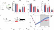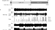 The EEG/EMG data were visualized and semi-automatically analyzed using MATLAB-based software, followed by visual inspection. Each 20-s epoch was staged into wakefulness, NREMS, and REMS. The EEG signals were subjected to fast Fourier transform analysis from 1 to 30 Hz with 1-Hz bins using MATLAB-based custom software. The relative power spectra was calculated as a ratio of the EEG power in each frequency bin to the total EEG power over 15–30 Hz frequency bins, which are outside of sleep/wake-related spectra and show relatively small variation through a day, for each wakefulness, NREMS, and REMS state in a 24-h period. The hourly delta power density (a.u.) was defined as the ratio of the mean delta band power (1–4 Hz) in each hour to the mean total EEG power over 15–30 Hz frequency bins in a 24-h period of the NREMS epochs17. The hourly theta power density (a.u.) was defined as the ratio of the mean theta band power (6–9 Hz) in each hour to the mean total EEG power over 15–30 Hz frequency bins in a 24-h period of the REMS epochs.