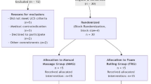 The sample size was calculated using the G*Power software (G*Power, Version 3.0.10, Germany) and have been described in detail elsewhere18. Assessments of statistical procedures were performed using IBM SPSS version 20 for Windows (SPSS Inc., Chicago, IL, USA). The independent samples t-test was used to compare all outcome variables at baseline. A 2(group) × 3(time) Mixed model repeated measures ANOVA was used to compare all values from the pre-test value to each time point within each group. Analyses testing for within-group changes were also performed using mixed-model repeated-measures analysis of variance. For any significant difference, a Bonferroni post-hoc test to denote significance was used for follow-up analysis. One-way ANCOVA was used to compare groups in the post-test and follow-up with each pre-test value as a covariate. The effect size was calculated for the magnitude of the difference using the partial η2 method as small (0.01 ≤ η2 < 0.06), medium (0.06 ≤ η2 < 0.14) or large (η2 ≥ 0.14)54,55. Also, the following formula (MCID = SD × 0.5) was used to calculate the minimum clinically important difference (MCID) in this study56. The significance level was set at p < 0.05, and all data are presented as M ± SD.