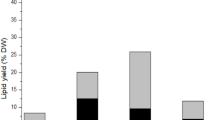 Lyophilized material of C. vulgaris (Midsona, Oslo, Norway) was purchased from a local health store. Lyophilized O. aurita was obtained from KissPlanet (Gembloux, Belgium). Kristalon Flower was purchased from Yara Norge as, Oslo, Norway. Sodium metasilicate pentahydrate was acquired from Skovly Engros as, Oslo, Norway. Kits for quantifying NO3, NO2, silicic acid, PO4 and NO4 were purchased from VWR, Radnor, Pennsylvania, USA. Dichloromethane (99.9%), methanol (99.8%), sulfuric acid (95–97%), hexane (99%), sodium metasilicate pentahydrate (≥ 95%), sodium chloride, isopropanol and lipid standards of diacylglyceryl-trimethylhomoserine (1,2-dipalmitoyl-sn-glycero-3-O-4′-(N,N,N-trimethyl)-homoserine; DGTS), sulfoquinovosyldiacylglycerol (SQDG) and phosphatidylinositol (PI) were purchased from Sigma Aldrich, St. Louis, Missouri, USA. Lipid standards of phosphatidylcholine (1,2-Dimyristoyl-sn-Glycero-3-Phosphatidylcholine; PC), phosphatidylglycerol (1,2-Dimyristoyl-sn-Glycero-3-Phosphatidylglycerol Na Salt; PG), phosphatidylserine (1,2-Dipalmitoyl-sn-Glycero-3-Phosphatidylserine Na salt; PS), phosphatidylethanolamine (1,2-Dimyristoyl-sn-Glycero-3-Phosphatidylethanolamine; PE), hydrogenated monogalactosyl diglyceride (MGDG), hydrogenated digalactosyl diglyceride (DGDG), ergosterol, triolein (TAG), diolein (DAG) and monolein (MAG) were purchased from Larodan AB, Solna, Sweden.