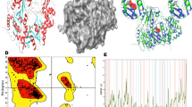 The gene for BAY10_3400 was amplified from genomic DNA and cloned into the expression vector BG1861 using ligation-independent cloning23. The expression vector provides a non-cleavable N-terminal His6-tag (SSGCID target ID ElanA.19303.a; UniProt ID A0A1T3E2H1). The enzyme was expressed in E. coli Rosetta BL21(DE3)R3 following standard SSGCID protocols, as described previously24. Purification was performed using Ni–NTA affinity and size exclusion chromatography following standard SSCID protocols25. Briefly, the bacterial cell pellet was suspended in a buffer comprised of 25 mM HEPES, 500 mM NaCl, 5% glycerol, 30 mM imidazole, 0.025% sodium azide, 0.5% CHAPS, 10 mM MgCl2, 1 mM TCEP, 250 µg/ml AEBSF, 0.05 µg/ml lysozyme pH 7.0). Cell lysis was undertaken by sonication, and the resulting extract clarified by centrifugation and passed over a HisTrap FF 5 ml column pre-equilibrated in 25 mM HEPES, 500 mM NaCl, 5% glycerol, 30 mM imidazole, 0.025% sodium azide, 1 mM TCEP pH 7.0. The column was washed with 20 column volumes of 25 mM HEPES, 500 mM NaCl, 5% glycerol, 30 mM imidazole, 0.025% sodium azide, 1 mM TCEP pH 7.0 to remove unbound proteins. The His-tagged protein was eluted with seven column volumes of a buffer comprised of 25 mM HEPES, 500 mM NaCl, 5% glycerol, 1 mM TCEP, 250 mM imidazole and 0.025% azide pH 7.0. The protein was further purified by size exclusion chromatography using a HiLoad 26/60 Superdex 75 preparative-grade column pre-equilibrated in 25 mM HEPES, 500 mM NaCl, 5% glycerol, 2 mM DTT, 0.025% azide pH 7.0, and calibrated using the GE Healthcare Calibration Kit (28-4038-41) with conalbumin, ovalbumin and ribonuclease A. Two protein peaks, corresponding to monomer and dimer species (molecular weights determined from the elution volume and a standard calibration curve) were pooled and analyzed by SDS–PAGE (see Supplementary Figure 1). The purified proteins were concentrated to 16 mg/ml (fractions from the dimer peak) and 36 mg/ml (fractions from the monomer peak) in 25 mM Hepes pH 7.5, 0.3 M NaCl, 1 mM DTT, 0.025% w/v sodium azide, 10% glycerol), flash frozen in liquid nitrogen and stored at − 80 °C.