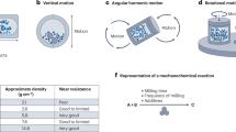 where en and et are the impact energies in the normal and tangential directions, respectively. The grinding efficiency, defined as the energy to create a new surface for the energy input, is ~ 15% at best for the comminution of quartz and soda-lime glass23, while most of the input mechanical energy does not contribute to the reaction. Therefore, determining which collision direction contributes the most to a wet mechanochemical reaction can help estimate the reaction rate from the input mechanical energy, and predict the most efficient milling conditions for producing the desired particles. There has been no discussion of particle synthesis by wet mechanochemical reactions from the ball collision direction.