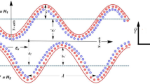 Lauga and Powers23, Cordero and Lauga24 emphasized on biophysical and mechanical aspect for locomotion of microorganisms. They mathematically explored the importance of shear-dependent viscosities for the locomotion of flagella and cilia induced motion because of metachronal rhythm. Ciliary motion has been studied by the researchers by utilizing two models i.e. (i) Envelop model (ii) Sublayer model. The envelope model approach has edge over the other model because of metachronal beats on cilia layer by overlooking the particulars of sub-layer dynamic forces. Furthermore, the envelope model can be used for quantitative analysis e.g., for comparing swimming velocities that are mathematically gauged with available data, which are recorded in water for numerous microorganisms24. In addition, the perturbation method can be used for analysis and systematic study of non-Newtonian effects. Recently, the power-law fluid because of ciliary motion has been studied by Siddique et al.25, in the unlimited channel. They showed that power-law fluid provides outcomes, which are nearer to estimated value \(6\times 10^{-3}\) ml/h. One can find some of recent work27,28,29,30.