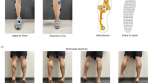 A shoe (LesSchuh) with a narrow (1 cm) ridge attached to the sole, as a limited base of support, was used to avoid a mediolateral shift of the CoP underneath the stance foot. LesSchuh was designed to limit ankle moments. At the same time, it still allows for anteroposterior roll-off and subsequent push-off because the material of the ridge bends with the sole in anterior–posterior direction. Participants were asked to walk on the ridge, without touching the ground with the sides of the shoe’s sole. Participants were also instructed to place their feet in a similar orientation as they would without the constraint, to avoid a “toeing-out strategy”20. Toeing-out could induce a mediolateral shift of the center of pressure after foot placement despite the narrow BoS.