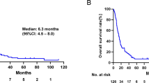 In the discovery cohort, the median PFS and CSS were 2.60 months (95% confidence interval [CI] 2.32–2.88) and 8.58 months (95% CI 5.62–11.54) (Fig. 1a,b). Complete response (CR), partial response (PR), and stable disease (SD) were achieved in 14 patients (8.5%), 22 patients (13.3%), and 28 patients (17.0%), respectively. The objective response rate (ORR) was 21.8%, and the disease control rate (DCR) was 38.8% (Supplemental Table 2).