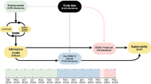 We used an extreme gradient boosting decision tree, as implemented in the XGBoost framework (version 1.3.3)16, as our machine-learning model. Models were trained using five-fold cross validation of the training set, with patients in the training folds not being present in the validation folds (Fig. 1). Final predictions were the mean prediction of the fives models trained during the cross-validation process. Model hyperparameters were optimized by selecting the hyperparameters which maximized the validation AUROC (the mean performance of model on the five sets of out-of-fold samples). Hyperparameter search was performed using Bayesian optimization utilizing the Tree Parzen Estimator algorithm as implemented in the hyperopt Python library (version 0.2.5)17,18. Bayesian optimization was used because it is empirically more efficient than grid or randomized search methods19. Medical conditions associated with a patient were included as a one-hot-encoded feature vector, the day of the week encoded using ordinal encoding, and all other categorical variables were encoded using target encoding20. The full encoding scheme is outlined in Table 1. Source code for our modelling is available online21.