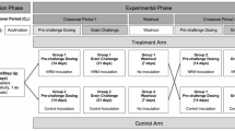 Fatty acid methyl esters (FAME) of feed samples were prepared according to Sukhija and Palmquist53. Freeze-dried rumen, abomasum and lower intestine contents, and faeces samples were prepared by direct transesterification by reaction with sodium methoxide (0.5 M) in methanol at 50 °C for 15 min followed by addition of hydrogen chloride (1.25 M) in methanol at 80 °C for 20 min. Methyl nonadecanoate (1 mg/mL) was added as internal standard. Fatty acid methyl esters and DMA were analysed by GC-FID using a Shimadzu GC 2010-Plus (Shimadzu, Kyoto, Japan) equipped with an SP-2560 (100 m × 0.25 mm, 0.20 µm film thickness, Supelco, Bellefonte, PA, USA) capillary column. The chromatographic conditions were as follow: injector and detector temperatures were set at 250 °C and 280 °C, respectively; helium was used as the carrier gas at 1 mL/min at a constant flow; the initial oven temperature of 50 °C was held for 1 min, increased at 50 °C/min to 150 °C and held for 20 min, increased at 1 °C/min to 190 °C and then increased at 2 °C/min to 220 °C and held for 40 min. Identification of FAME and DMA was achieved by comparison of fatty acid retention times with those of commercial standards (FAME mix 37 components from Supelco Inc., Bellefont, PA, USA) and with published chromatograms26. Additional confirmation of FAME and DMA was achieved by electron impact mass spectrometry using a Shimadzu GC–MS QP2010 Plus (Shimadzu, Kyoto, Japan). The chromatographic column and the GC conditions were like the ones in the GC-FID analysis.