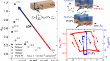 Since there is no sizable change in either the damping-like or field-like torque by gating, we propose that gating modulates the spin-memory loss (SML)25,26, explaining the unchanged S/A. SML manifests in heterostructures consisting of a heavy metal and is attributed to the SOI of the heavy metal and interfacial disorder. SML gives rise to depolarization of the spin current propagating through the interface and is salient in Pt-based heterostructures. Indeed, the spin flip parameters, δ, in Co/Pt and Pt/Py are 0.9 and 0.6327,28, respectively, and are substantially larger than those of other d-electron-material-based heterostructures. Since the SOI is related to the SML as described above, modulation of the SOI by gating enables modulation of the SML. The right-hand side of Eq. (1), including the ratio S/A, is unchanged by gating in our experiments. However, in reality, the spin current generated by the SHE in Pt, JS0, does not fully flow into Py, and part of it dissipates at the interface due to the sizable SML. In fact, by considering SML, merely 53% of the spin current generated in Pt by the SHE flows into Py at VG = 0 V (note that the spin flip parameter δ of Pt/Py is 0.63 and the spin depolarization at an interface in SML is described as [1 − exp(− δ)]). Hence, the transmitted spin current from Pt to Py at VG = 0 V is equal to JS0exp(− 0.63). Meanwhile, under the application of VG = + 1.25 V, the charge current density flowing in Pt slightly increased (+ 14%; see the modulation of ρPt shown in Fig. 2a), whereas the spin current density originally generated in Pt by the SHE at VG = + 1.25 V, JS0’, decreased to approximately 70% of that at VG = 0 V, JS0 (see Fig. 4 of our previous report12). Since the ratio S/A is unchanged at VG = + 1.25 V, the spin flip parameter in Pt/Py at VG = + 1.25 V is estimated to be 0.14. The sizable suppression of δ by gating is due to suppression of the SOI in Pt by gating, given that SML originates from the SOI and the δ of a bilayer consisting of weak SOI metal is, for example, 0.017 for Pd/Py28 and 0.25 for Co/Cu25. Thus, the suppression of δ by gating also corroborates the gate-tunable SOI of Pt.