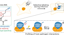 Light and heavy labelled HeLa cells were seeded at a density of approximately 4.5 × 106 cells per 15 cm culture plate 16–24 h prior to infection. For all HeLa cell infections: overnight bacterial cultures were subcultured 1:33 in LB without antibiotics and incubated for 3 h at 37 °C with shaking. 1 mL of bacterial cultures was pelleted and resuspended in Dulbecco’s Phosphate-Buffered Saline (DPBS) (Hyclone), diluted in the appropriate isotope-supplemented DMEM, and added to the HeLa cells at a multiplicity of infection (MOI) of ≈ 100:1. Infections proceeded for 15 min at 37 °C in 5% CO2, after which non-internalized bacteria were removed by three washes in DPBS and cells incubated in growth media containing 100 µg/mL gentamicin until 2 h post-infection, followed by growth media containing 10 µg/mL gentamicin for the remainder of the experiment. HeLa cells were infected for a total of 8 h.