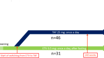 Demographics and clinical characteristics were assessed at baseline, including age, gender, HCV genotype, viral load, liver cirrhosis status, history of previous HCV treatment, comorbidities and history of drug abuse. Liver cirrhosis was defined by any of the following: liver histology, transient elastography (FibroScan®; Echosens, Paris, France, > 12 kPa), acoustic radiation force impulse (> 1.98 m/s), fibrosis-4 index (> 6.5) or the presence of clinical, radiological, endoscopic, or laboratory evidence of cirrhosis and/or portal hypertension, as previously described15. Hepatocellular carcinoma (HCC) was confirmed by histological or clinical diagnosis, and patients with inactive HCC were defined as those who were subjected to surgical resection, local alcohol injection, radiofrequency ablation or liver transplantation and without imaging evidence of recurrence within 3 months prior to receiving DAA treatment12. Patients with chronic kidney disease (CKD) included dialytic patients and patients with a decreased estimated glomerular filtration rate (eGFR, < 60 ml/min/1.73 m2) or kidney fucntion damage (e.g., presence of proteinura) for more than 3 months16.