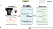 Mean and standard deviations of respiratory rate were 21.8 ± 2.5 and heart rate were 67.6 ± 2.4. The percent time spent in the recliner each day was on average 50% in the days prior to surgery and then significantly increased to ~ 80% for a month following surgery, before gradually declining to his baseline around the time he began attending cardiac rehab (Fig. 9a-c). His post-surgical RR during sleep was ~ 19 bpm, and when awake, his RR’s were punctuated by frequent episodes of extreme tachypnea (30–40 bpm), presumably due to sternal wound pain and chest wall changes that are expected after cardiac surgery (Fig. 9d,e,j). His respiratory rate gradually decreased over 2–3 weeks following surgery and stabilized near his baseline respiratory rate of ~ 16 bpm, consistent with previously reported respiratory rate recovery times following cardiac surgery (Fig. 9d,e,j,k)39. We quantified his RR for 7-days “pre-surgery”, 7-days immediately “post-surgery”, and 7-days at the end of “recovery” (Fig. 9f). Following a similar pattern to the respiratory rate, his heart rate also decreased to pre-surgical level over the course of 2 months (Fig. 9g). Although his weight fluctuated during the 3 months of monitoring, it did not show large excursions and he was felt to be euvolemic at clinic visits during the 3 months (Fig. 9h-i). Although his ventricular function modestly improved from 15 to 25%, it remained severely depressed based on echocardiography. For the first 2 weeks immediately following cardiac surgery, the quality of the BedScales BCG resulted in indeterminant heart rates, which we speculate is the result of dynamic intrathoracic changes that impact cardiac mechanical coupling to the chest wall. This improved within two weeks and the BedScales-derived heart rates gradually declined from the 70s to the 60s bpm. Consistent with his persistent ischemic cardiomyopathy was his high burden of periodic breathing (periodicity of > 30 s) along the spectrum of heart-failure-associated Cheyne-Stokes Breathing (Fig. 9l).