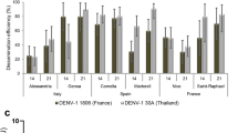 Another factor that affects DENV replication is temperature, which may also affect the efficacy of RNA silencing46,47. Previous studies have revealed that the extrinsic DENV-2 incubation period in Ae. aegypti, Ae. albopictus, and Culex pipiens was reduced at higher temperatures48,49,50. In other words, a short extrinsic incubation period may increase the capacity of a vector to transmit the virus. In the present context of global warming, the DENV may have a shorter extrinsic incubation period in mosquitoes. In future studies, virus challenge experiments should therefore be performed at higher temperatures to elucidate the antiviral capacity of transgenic mosquitoes more comprehensively.