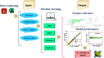 During the last decade, alongside the developments of intelligent methods based on machine learning (ML) techniques, many attempts have been made to predict thermodynamic results with a higher accuracy based on reliable experimental data. Abdi-Khanghah et al.47 studied alkane solubility in supercritical CO2. Two kinds of artificial neural networks were used for their study: Radial basis function (RBF) and multi-layer perceptron (MLP) artificial neural network (ANN). The MLP-ANN outperformed the RBF-ANN in predicting n-alkane solubility in supercritical CO247. Songolzadeh et al.48 demonstrated that the PSO–LSSVM model is an effective technique for predicting n-alkane solubility in supercritical CO2 with high accuracy. The least-squares support vector machine (LSSVM) was employed, which was tuned using two different optimizing algorithms: particle swarm optimization (PSO) and cross-validation-assisted Simplex algorithm (CV-Simplex)48. Chakraborty et al.49 developed a set of data-driven models capable of predicting VLE for the binary systems of C10-N2 and C12-N2. In comparison to the VLE modeled using the PR-EOS, both models significantly improved the estimated value of binary mixture equilibrium pressure49. Mohammadi et al.50 implemented different ML models to predict hydrogen solubility in various pure hydrocarbons in wide pressure and temperature ranges and compared them with some of the common EOSs. Their results showed that using intelligent models shows more precise results than the common usage of EOSs in hydrogen solubility estimation50. To predict nitrogen solubility in unsaturated, cyclic and aromatic hydrocarbons, Mohammadi et al.51 employed a convolutional neural network (CNN) and the results showed that pressure is the most significant factor for nitrogen solubility in unsaturated hydrocarbons. In general, prediction based on EOSs semi-analytical methods has been the common way to estimate the N2 solubilities in alkanes. On the other hand, the mentioned method is case-specific and it is limited to some defined hydrocarbons with specific parameters for each EOS. Hence, using intelligent models like proper ML algorithms and reliable experimental data may lead to a model for predicting N2 solubility in normal alkanes with high accuracy and this helps to accelerate predictions.