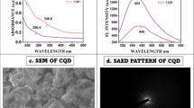MCF-7 (human breast cancer) and MCF-10 A cell lines were purchased from ECACC (Europe) while CHO cells were purchased from National Centre for Cell Sciences, Pune, India and maintained in high glucose containing Dulbecco’s Modified Eagle Medium (DMEM) (Himedia, India) at 37 °C under 5% CO2. MCF-7 cells (50,000 cells/well) were seeded in 35-mm imaging dish (genetix) and incubated overnight. The cells were gently washed with DMEM media and maintained at respective temperatures for 10 min, followed by imaging. Cellular imaging was performed in live-cell mode of LSM 780 confocal microscope (Zeiss) with inbuilt temperature control module (excitation 488 nm, emission 580–630 nm). T-PMT was used to capture bright field images of the cells. The lambda scanning for fluorescence emission spectra of the intracellular CND was carried out with confocal microscope (Zeiss LSM 780). All chemicals and reagents like MTT (3-(4,5-Dimethyltiazol-2-yl)-2,5-diphenyltetrazolium bromide), sodium acetate, sodium chloride, sodium bicarbonate, Dimethylsulfoxide (DMSO), 4-(2-hydroxyethyl)-1-piperazineethanesulfonic acid (HEPES), DMEM media were procured from Sigma chemical Inc. (USA). Fetal Bovine Serum (FBS) was purchased from GIBCO Laboratories, USA. Polar star Omega Plate Reader Spectrophotometer-BMG LABTECH, Germany was used to measure spectrometric reading. The IC50 values were calculated using graphpad prism 6. MTT (3-(4, 5-dimethylthiazol-2-yl)-2, 5-diphenyltetrazolium bromide) assay, a colorimetric assay was employed to measure cellular metabolite activity and hence the cell viability. Viable cells that contain NAD(P)H-dependent oxidoreductase enzymes reduce the MTT reagent to formazan, to give a deep purple color. For MTT cytotoxicity assay, MCF-7 (Human breast adenocarcinoma cell line) and CHO (Chinese Hamster ovary cell line) cells were cultured in DMEM medium containing 10% FBS and grown up to 60–70% confluence at 37 °C and 5% CO2 in an incubator. After trypsinization, 7 × 103 cells were seeded in 96 well tissue culture plates and allowed to grow monolayer after incubation overnight at 37 °C and 5% CO2. MCF-7 and CHO cells were treated with different concentrations of carbon nanodots (18.75–25,298 µg/mL) and incubated for 18 h. Vehicle control was set up wherein cells were treated with formulation without carbon nanodots. Control cells were incubated in cell culture medium. All treatments were carried out in quadruplicate (n = 4). After 24 h, MTT solution (5 mg/mL in Phosphate Buffered saline (PBS)) was added to each well for dissolving the formazan crystals. The plate was kept on plate shaker in dark. After 30 min, absorbance was measured at 570 nm that corresponds to viability of cells. Absorbance at 600 nm was used as a reference wavelength. The percentage of dead cells was calculated as ([optical density (OD) of vehicle control sample − OD of treated sample/OD of control sample] * 100) and represented as mean ± Standard Deviation (SD) (n = 4). This was plotted against different log concentrations of the CND formulation and half maximal inhibitory concentration (IC50) was calculated. MCF-7 cells were incubated with 1075.6 µg/mL of CND for 24 h for its internalization. After 24 h, cells were washed with PBS, pH 7.4 and acid stripping buffer (DMEM with 0.2% bovine serum albumin (BSA), pH 3.5) alternatively twice before suspending cells in 1 mL PBS, pH 7.4. This procedure was carried out to remove supernatant and membrane bound CND in the cells after internalization. The photoluminescence intensity (PL) was measured at excitation 544 nm and emission 590 nm, with 10 °C increase in temperature from 25 to 45 °C.