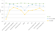 In this context, despite we did not find differences in MCI diagnosis between groups, the PD-pRBD group showed a widespread impairment in the neuropsychological battery with lower performance in mental processing speed, verbal fluency, verbal memory, visuospatial (VS) and visuoperceptual (VP) tasks. This result is in line with previous works in PD-pRBD11, 12. Furthermore, we found a significant correlation between the mean functional connectivity strength and a visuoperceptual task in PD-pRBD, as well as significant correlations between the normalized characteristic path length and measures of mental processing speed and verbal learning in PD-pRBD. The role of altered brain functional connectivity in cognitive impairment in PD-pRBD is congruent since an incremented path length implies a less efficient transfer of information due to the altered integrity of the network39, 40. Our result concords well with a previous work of our group with isolated RBD patients, finding a correlation between mental processing speed domain and temporoparietal connectivity disruption20. It is interesting to note that the mental processing speed domain is assessed with the SDMT and Stroop Color in both studies. It may be assumed that SDMT and Stroop Color test require not only mental processing speed, but also the integration of attention, VS, and VP functions. So, this may be the reason why they are more sensitive when it comes to reflecting brain dysfunctions in patients with RBD. In summary, PD-pRBD patients showed worse cognitive profile and functional connectivity abnormalities suggesting an association between pRBD and severe phenotype.